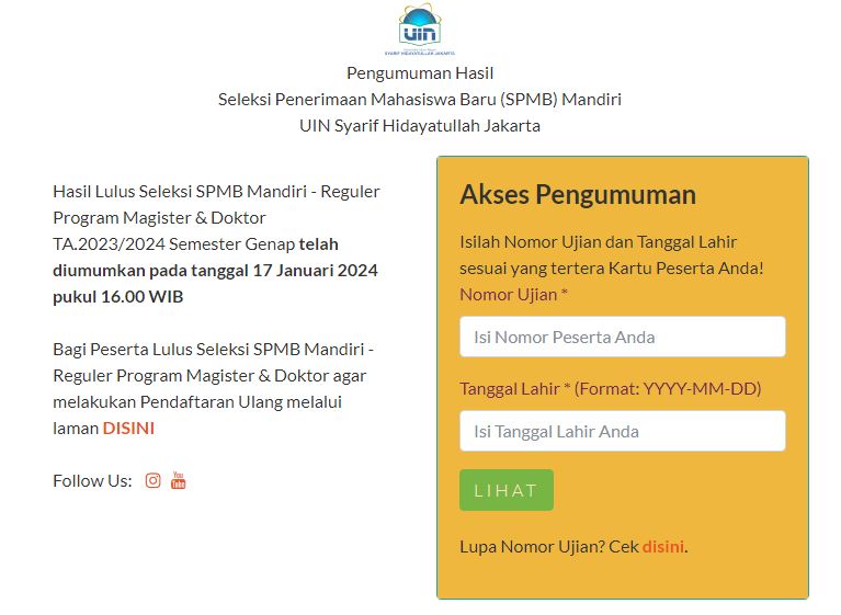 “Contoh Pengumuman” Hasil Lulus Seleksi SPMB Mandiri – Reguler Program Magister & Doktor TA.2023/2024 Semester Genap telah diumumkan pada tanggal 17 Januari 2024 pukul 16.00 WIB Bagi Peserta Lulus Seleksi SPMB Mandiri – Reguler Program Magister & Doktor agar melakukan Pendaftaran…
